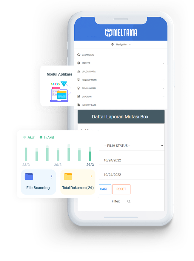 Meltama mengembangkan sistem aplikasi guna memanfaatkan teknologi informasi dalam dunia kearsipan, menjadikan pengelolaan arsip yang berbasis komputerisasi dan tersistematis. Kami juga bertujuan memudahkan user dalam pencarian dokumen jika ingin diperlukan kembali.